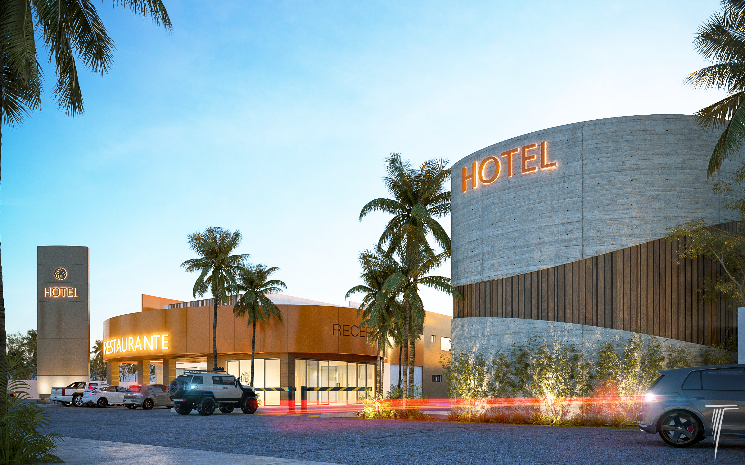Conjunto de hotel incluye 40 habitaciones, área de restaurante,cafetería y estacionamiento.